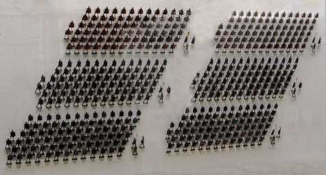 3 когорты по 360 человек, стоящие неразвернутымм строем с промежутками