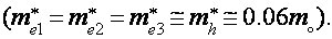 При данной ориентации Н наблюдаются близкие циклотронные массы электронов и дырок