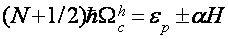 Фрагмент зонной структуры висмута в магнитном поле, параллельном тригональной оси, порог ультраквантового предела. Штриховкой выделены зонные экстремумы при Н=0. ![]()