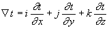 является вектором, "градиентом t", указывающим в каждой точке величину и направление наибольшего возрастания t.