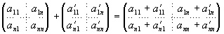 Этим более глубоким осознанием создавшегося положения вещей мы обязаны Кэли. В своей работе «A Memoir on the Theory of Matrices» («Мемуар по теории матриц»; Philosophical Transactions, 1858) он развил некоторое матричное исчисление, имеющее дело с 4-, 9-, 16-, n2- членными комплексными числами и в качестве частного случая охватывающее также и кватернионы. Действия над матрицами отталкивалются у Кэли от очень простой идеи, состоящей в том, что с матрицами, возникающими в теории линейных подстановок, следует обращаться по правилам, инспирированным этой теорией. Соответственно этому сложение двух матриц должно осуществляться сложением соответствующих их элементов: