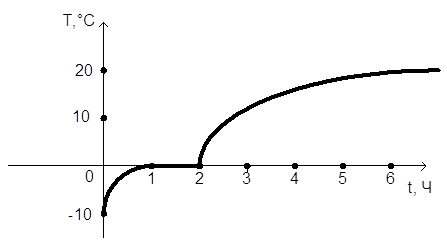 Пример 1. С мороза в комнату внесли банку со льдом и стали наблюдать за изменением температуры вещества в банке: лед постепенно таял, когда он растаял весь, температура воды стала повышаться, пока не сравнялась с температурой в комнате. На рисунке изображен график зависимости температуры от времени.