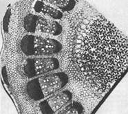 Вот как Грю описывает эти плотные ткани: «Наиболее верным и близким сравнением, которое мы могли бы теперь привести для выяснения сущности строения тела растения, могло бы быть сопоставление с куском тонкого кружева, сплетаемого женскими руками на коклюшечной подушке; действительно, и сердцевина, и ее лучики в паренхиму коры представляют прекрасную картину тончайшего кружева. Волокна сердцевины располагаются в горизонтальной плоскости, как основа в кружевной ткани, ограничивая отдельные пузырьки сердцевины и коры совершенно так же, как в кружеве нити оплетают ячеи; сердцевинные лучи построены без пузырьков ила с очень мелкими, наподобие плотных частей кружева или полотна…