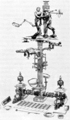 Изображение бинокулярного микроскопа, использовавшегося Грю в 1685 г.