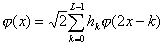 Из свойства 4’ непосредственно следует, что, во-первых, функция j может быть представлена в виде линейной комбинации базисных функций пространства V-1 . Так как функции {jj,k(x)=2-j/2j(2-jx-k)}kÎZ образуют ортонормальный базис в Vj, то имеем