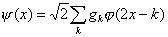 Функция j - так называемая масштабирующая (скейлинг-) функция. С ее помощью можно определить функцию y - вейвлет - такую, что набор {y(x-k)}kÎZ образует ортонормальный базис в W0. Тогда