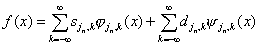 Зададим все пределы суммирования в формуле (2.1). Функцию f(x) можно рассматривать на любом n-м уровне разрешения jn. Тогда разделение между ее усредненными значениями на этом уровне и флуктуациями вокруг них выглядят как
