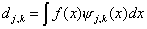 После того, как вычислены коэффициенты hk и gk, т.е. выбран определенный вейвлет, можно проводить вейвлет-преобразование сигнала f(x), поскольку задан ортонормальный базис (yj,k, j j,k). Любая функция f(x)ÎL2(R) полностью характеризуется ее вейвлет-коэффициентами разложения по этому базису и потому может быть представлена формулой