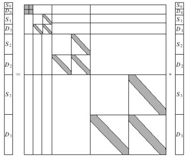 Рис.2. Нестандартное матричное умножение при вейвлет-анализе.