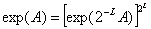 Алгоритм вычисления экспоненты матрицы основывается на тождестве
