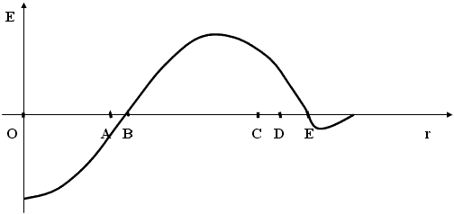 Для иллюстрации этого утверждения, рассмотрим задачу. Имеем центральный отрицательный заряд в точке О и распределенный по сфере с центром в точке О положительный заряд в два раза больший по величине. В результате на пробный, положительный заряд, помещённый на поверхность сферы, будет действовать результирующая кулоновская сила, направленная в центр сферы, т.е. влияние центрального отрицательного заряда будет больше, чем влияние положительного заряда, распределённого по сфере. Таким образом, центральный заряд удерживает около себя положительно заряженные ядра. С другой стороны, суммарный заряд внутри сферы с точкой В будет положительным. И уже этот положительный заряд не даёт электронам (т.к. они заряжены отрицательно) вылететь дальше точки Е и покинуть пределы ШМ.