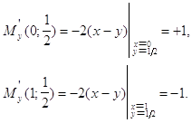 то М(х, y) строго вогнута по х для любого y Î(0;1). Следовательно, цена игры находится по формуле (3)