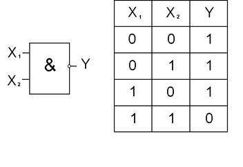 На рис.1 ¸ 10 представлены логические элементы, реализующие рассмотренные в п.2.2. функции. Там же представлены так называемые таблицы состояний или таблицы истинности, описывающие соответствующие логические функции в двоичном коде в виде состояний входных и выходных переменных. Таблица истинности является также табличным способом задания ФАЛ.
