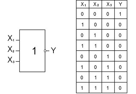 2.5. Логические элементы, реализующие операции коньюнкции, дизьюнкции, функции Пирса и Шеффера, могут быть, в общем случае, n - входовые. Так, например, логический элемент с тремя входами, реализующий функцию Пирса, имеет вид, представленный на рис.10.
