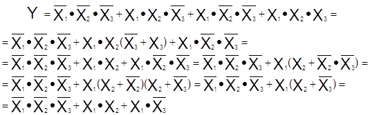 Упростим данную ФАЛ, используя вышеприведенные правила. Получим: