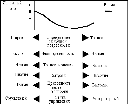 Финансовый профиль проекта определить с достаточной точностью невозможно. Тем не менее, необходимо знать, что действительная его форма во многом определяется решениями руководства НИОКР.