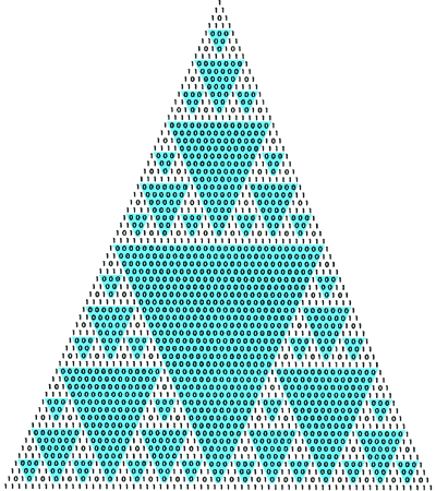 Этот треугольник можно превратить в привлекательный фрактальный узор, если заменить нечётные коэффициенты единицами, а чётные — нулями (внизу). Узор демонстрирует свойство коэффициентов, применяемое при «арифметизации» компьютерных программ, которая преобразует их в алгебраические уравнения.
