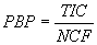 где PBP - срок окупаемости, выраженный в интервалах планирования, TIC - полные инвестиционные затраты проекта, NCF - чистый эффективный денежный поток за один интервал планирования.