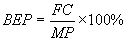 где BEP - точка безубыточности, в процентах от выручки от реализации, FC - сумма постоянных производственных затрат, MP - маржинальная или валовая прибыль (все параметры - за один интервал планирования).