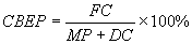 где CBEP - точка платежеспособности, в процентах от выручки от реализации, FC - сумма постоянных производственных затрат, MP - маржинальная или валовая прибыль, DC - сумма амортизационных отчислений (все параметры - за один интервал планирования).
