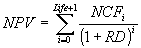 где NCFi - чистый эффективный денежный поток на i-ом интервале планирования, RD - ставка дисконтирования (в десятичном выражении), Life - горизонт исследования, выраженный в интервалах планирования.