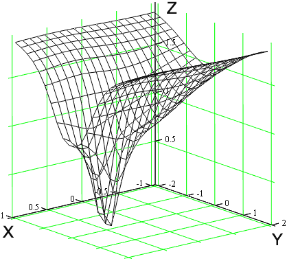 которое представляет собой некоторую поверхность. Участок этой поверхности внутри и вблизи центральной зоны взаимодействия показан на рис. 2 в пределах изменения x от –1 до 1, и y от –2 до 2.