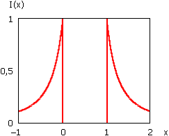 Смысл I(x) – потенциальная энергия на единицу длины вдоль x, просуммированная по бесконечной плоскости (с координатой x), перпендикулярной оси x. С другой стороны, это – осреднённая в названной плоскости относительная сила воздействия на заряд слоем поля, толщиной dx. График I(x) показан на рис. 3.
