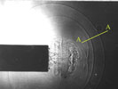 Для обеих зависимостей за начало отсчета принят момент прихода возмущения от головной части импульсной струи в рассматриваемую точку. Наличие нескольких максимумов в фазе сжатия на кривой 1 не является случайным, а имеет стабильную повторяемость во всех опытах с установкой датчика в этой точке. Существование этих максимумов объясняется присутствием дополнительных волн сжатия, следующих в непосредственной близости за фронтом основной ударной волны. Фронты этих волн можно отчетливо наблюдать в проходящем луче лазера рис. 2 (полосы поперек отрезка А-А)