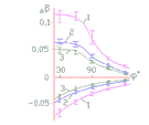. Перегиб кривых находится в интервале полярных углов 60 - 75¦ , что не противоречит условию равенства скорости звука и скорости нормальной составляющей набегающего потока. Наименьшее значение избыточного давления в фазе разряжения, следующей за фазой сжатия, монотонно увеличивается с увеличением полярного угла (рис. 5). Перегибов на этих зависимостях не наблюдается.