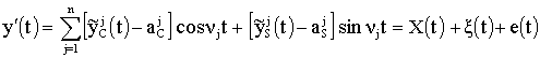 методом наименьших квадратов по интервалу (0,t1)U(t2,T) найдем тренд ajC(t), ajS(t), проинтерполируем его на (t1,t2) и вычтем из соответствующих исходных последовательностей