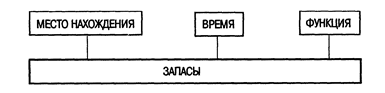 Первый вывод связан с критерием классификации по месту нахождения запаса. Второй - с критерием классификации по времени, который позволяет выделить различные виды запасов в зависимости от их величины. Третий вывод позволяет добавить еще один критерий классификации - функцию запаса. Итак, критериями классификации запасов могут быть два параметра движения материальных потоков - пространство (или место нахождения) и время, а также функция запаса (рис. 6).