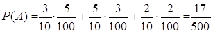 P (A/H1) = 5/10; P(A/H2) = 3/10; P(A/H3) = 2/10