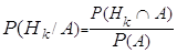 Здесь P(Hk /A) – условная вероятность события (гипотезы) Hk или вероятность того, что Hk реализуется при условии, что событие А произошло.