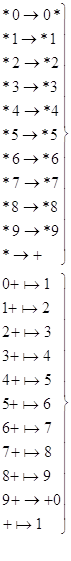 | Перегоняем служебный символ * в конец слова n, чтобы отметить последнюю цифру младших разрядов. Увеличиваем на единицу, начиная с цифр младших разрядов. |