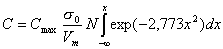 x - осевая координата, единица которой равна ширине пика на высоте Cmax/2 от основания.