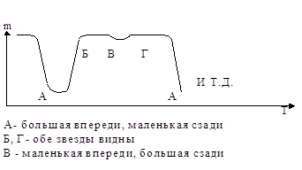 По многократным наблюдениям затменной переменной звезды можно построить кривую блеска. Если сравнить звездные величины в минимуме и максимуме блеска. Измерив промежуток времени между двумя последовательными максимумами (или минимумами), найдём период изменения блеска. На рисунке 2 изображена кривая блеска типичной затменной переменной звезды β Персея, названной арабами Алголем (глаз Дьявола).