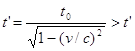 Предсказываемый релятивистской теорией эффект замедления времени состоит в том, что с точки зрения движущегося относительно рассматриваемой системы наблюдателя все интервалы времени (t’), характеризующие поцессы в этой системе (колебания маятников часов, распад нестабильных частиц, старение биологических организмов и т.д.) увеличиваются по сравнению с интервалами, наблюдаемыми в самой этой системе (