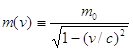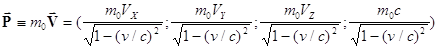Пространственные компоненты этого четырехвектора весьма схожи с классическим импульсом mV. Учитывая эту аналогию иногда вводят понятие релятивистской массы, величина которой возрастает с увеличением скорости движения тела относительно неблюдателя: