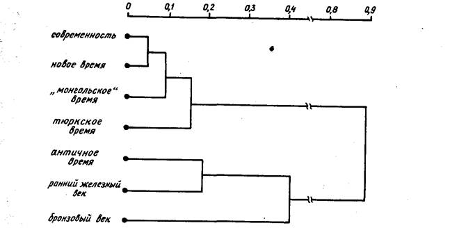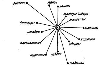 хаянский, типичными представителями которых признаны киргизы (и хакасы. Согласно морфологическим показателям межгрупповых сопоставлений оба эти варианта тураноидной расы отличаются от казахстанского усилением элементов восточного расового ствола (рис. 3).