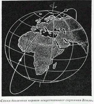 И вот в Советском Союзе была создана ракета, способная развить скорость 8 км/сек. Она стартовала 4 октября 1957 г. Взлетев ввысь вертикально, свечкой, ракета пронзила стратосферу. Ее вели автоматические устройства, действующие по заданной программе. Ракета поднялась на двести с лишком километров, постепенно приняла горизонтальное направление и легла на курс. Нужно было это сделать очень точно: