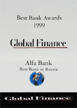 Необходимо отметить, что и в докризисный период Банк удостаивался подобных званий. Помимо уже упоминавшихся наград Central European Euromoney (апрель 1997 г. и апрель 1998 г.), в декабре 1996 г. Альфа-Банк был назван одним из наиболее перспективных и организованных банковских институтов России (Merrill Lynch).