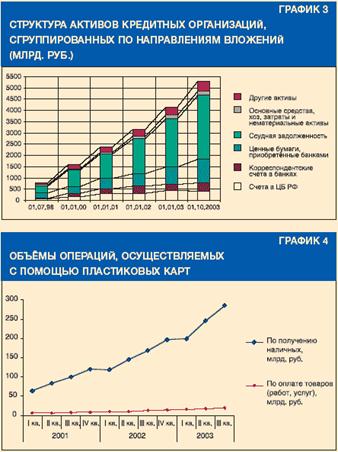 В-третьих, многие банки начинают активно развивать потребительское кредитование с использованием пластиковых карт. Хотя выпуск кредитных карт предполагает довольно крупные начальные затраты, этот сегмент является для банков весьма перспективным. Проценты по потребительскому кредитованию сегодня существенно выше, чем в кредитовании корпоративного бизнеса.