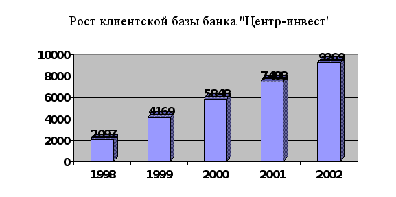 Клиентская база банка в 2001 году увеличилась на 23,4 %. Стабильный рост числа клиентов – результат высоких стандартов работы банка: