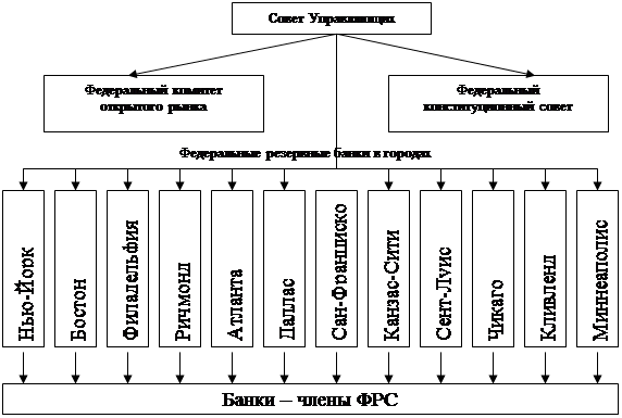 · Федеральной резервной системы, выполняющей функции центрального банка страны;