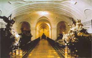 Обратите внимание на саркофаг дочери Марии Терезии эрцгерцогини Марии Кристины, исполненный Антонио Канова в 1797-1805 годах. С 1634 года рядом с церковью находится склеп, в котором хранятся 54 урны с сердцами членов кайзеровской семьи -" Херцгруфт". Неподалёку, под сводами церкви Капуцинов, - усыпальница " Кайзергруфт". Как и "Херцгруфт", она открыта для обозрения. Здесь нашли последний приют большинство Габсбургов - 144 саркофага, 12 из которых хранят останки императоров, 15 - императриц. Наиболее впечатляет двойной саркофаг Марии Терезии и её супруга Франца 1 Стефана. выполненный Бальтазаром Фердинандом Моллем.
