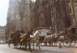 Штефансплатц живёт кипучей и разнообразной жизнью, неотъемлемая часть которой фиакры - коляски. запряжённые лошадьми. Вена - один из немногих городов мира, где лошадь до сих пор является равноправным участником движения. Своим названием фиакры обязаны церкви Святого Фиакра в Париже, месту стоянки наёмных экипажей. Приятно совершить в них прогулку и послушать рассказ "фиакрщика", знатока и патриота своего города. Те, кого особенно заинтересует эта венская достопримечательность, могут посетить музей фиакров, находящийся в 17-м районе (Veronikogosse 12).