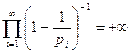 . Опираясь на теорему о сходимости бесконечного произведения, из расходимости предыдущего делаем вывод, что ряд