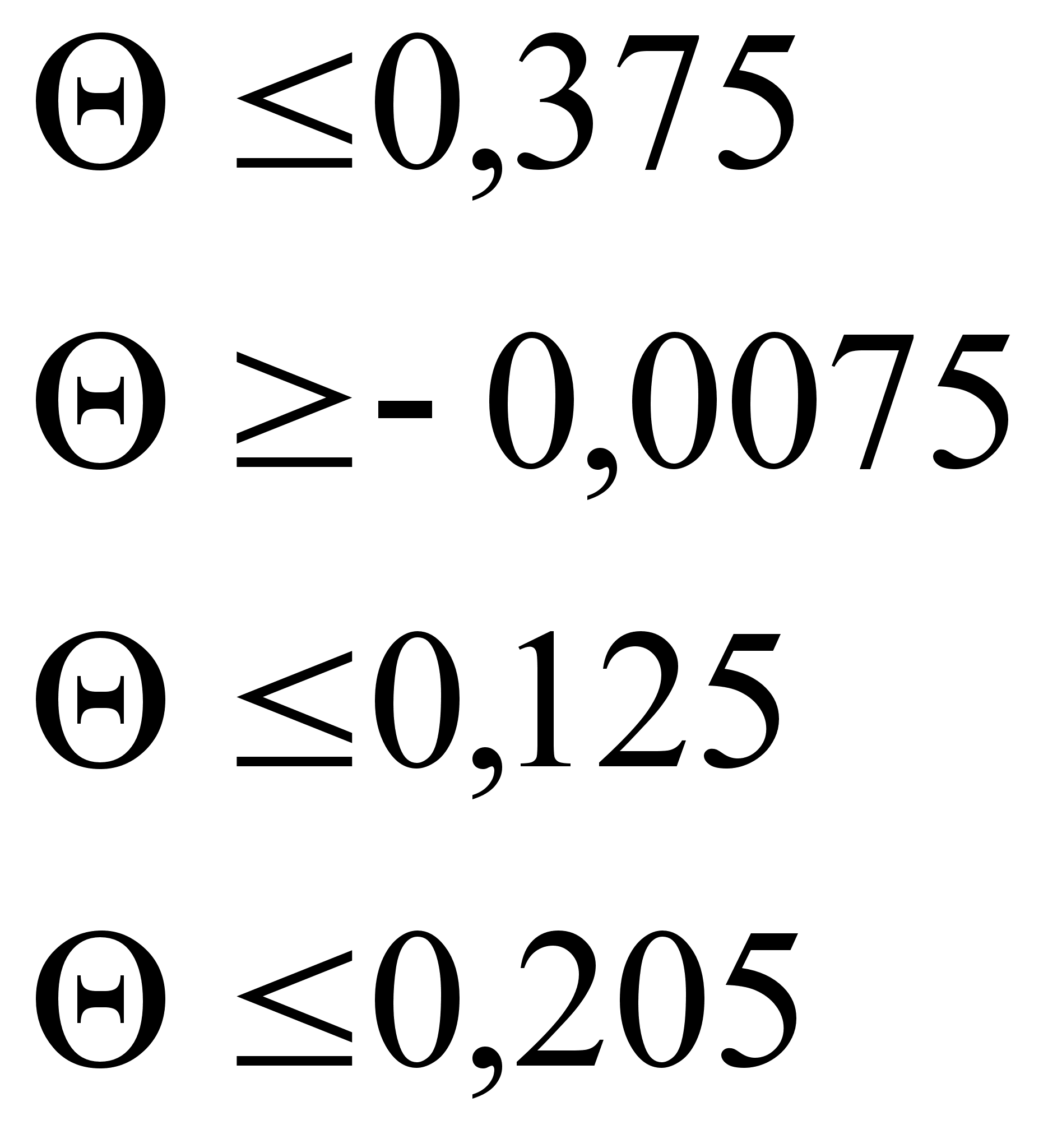 Все оценки опорного плана должны быть неотрицательны, а значит должны выполняться условия: