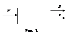 Понятие об управляемых объектах. Рассмотрим прямолинейное движение автомобиля. В каждый момент времени состояние автомобиля можно характеризовать двумя числами: пройденным расстоянием s и скоростью движения v. Эти две величины меняются с течением времени, но не самопроизвольно, а сообразно воле водителя, который может по своему желанию управлять работой двигателя, увеличивая или уменьшая развиваемую этим двигателем силу F. Таким образом, мы имеем три связанных между собой параметра: ,v,F,показанных на схеме (рис. 1). Величины ,v,характеризующие состояние автомобиля, называют его фазовыми координатами,а величину F – управляющим параметром.