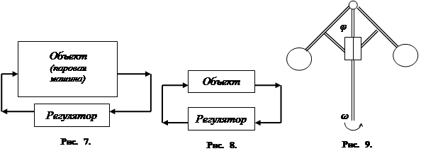 Первым устройством этого рода был центробежный регулятор Уатта, сконструированный для управления работой паровой машины (см. рис. 9). Схема этого регулятора показана на рис. 7. В общем случае (рис. 8) на вход регулятора подаются фазовые координаты объекта.